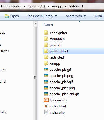 Vaša “C:\xampp\htdocs” mapa bi trebala izgledati otprilike kao na slici: