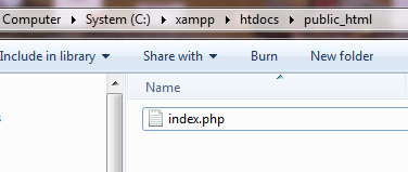 I na kraju kopirajte “index.php” iz raspakirane “Codeigniter_2.1.0.zip” arhive u mapu “C:\xampp\htdocs\public_html” tako da imate “C:\xampp\htdocs\public_html\index.php” kako je prikazano na slici: